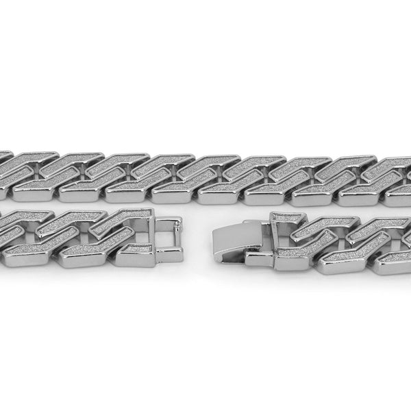 The strong, tightly-spaced links of our newest 18 mm Stardust Miami Cuban Link Necklace makes for a Chunky but still Sleek and Shiny design. The Sandblast Bling makes it Look...