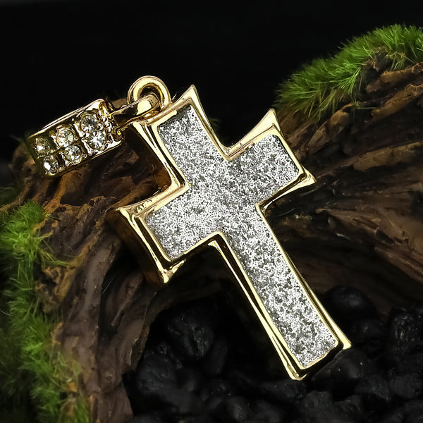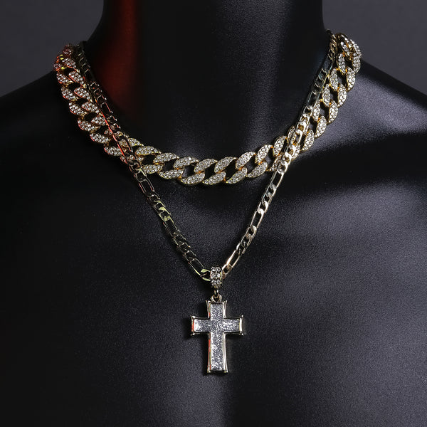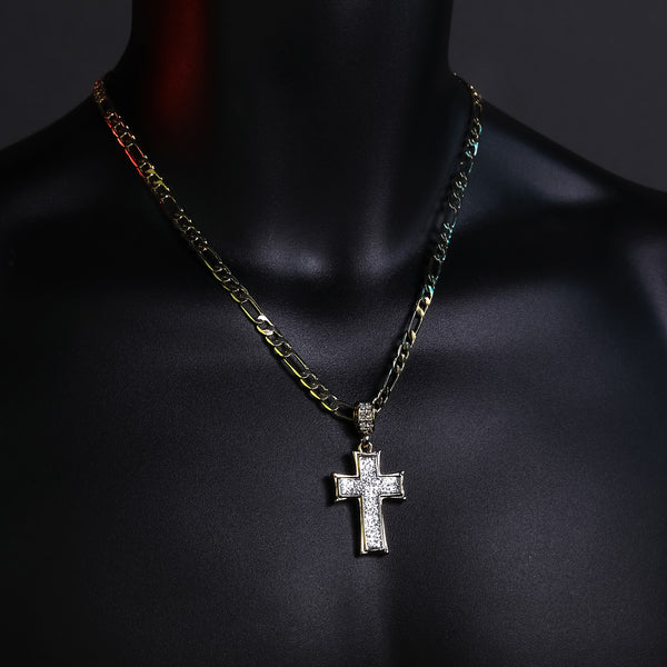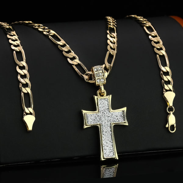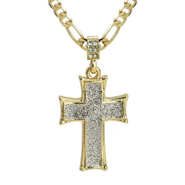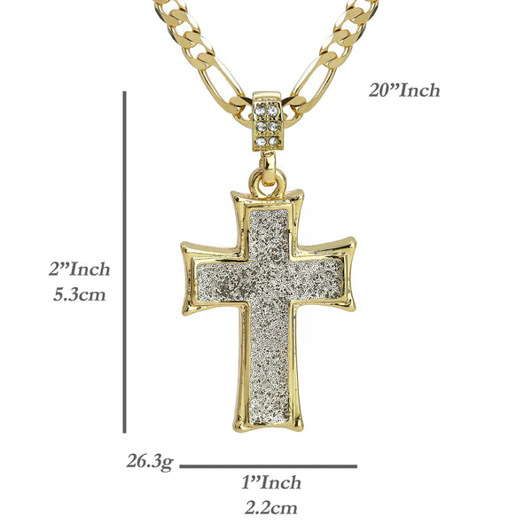 Silver Thick Stardust Cross Pendant 20" Figaro Chain Hip Hop Style 18k Gold Plated