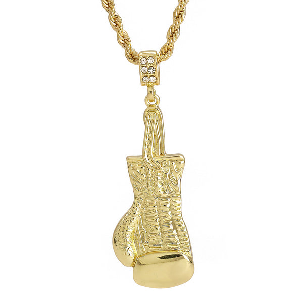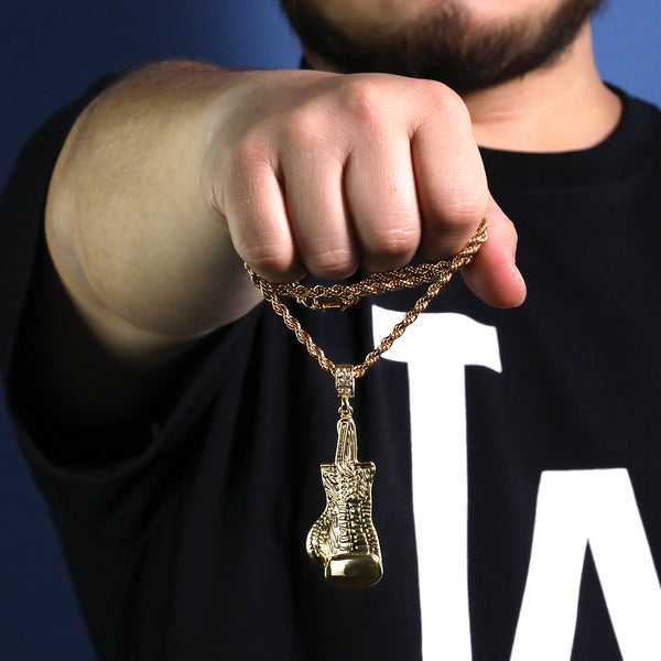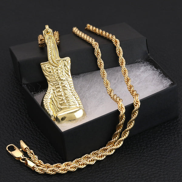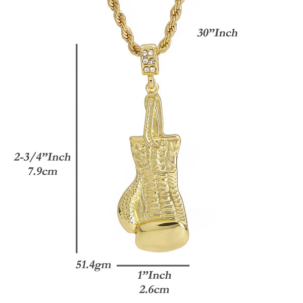 Single Boxing Glove Pendant 30" Rope Chain Hip Hop Style 18k Gold Plated