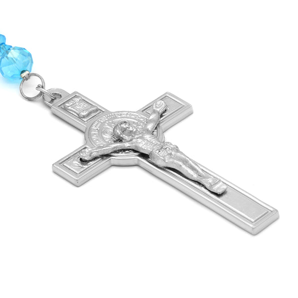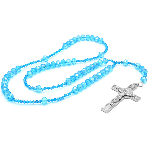 Sky Blue Crystal Line Rosary With Cross Pendant