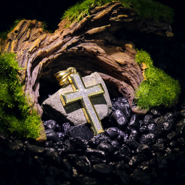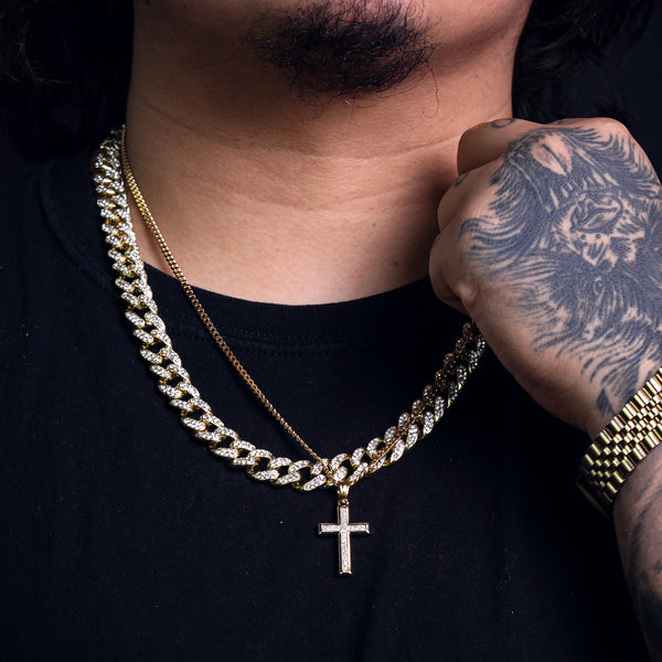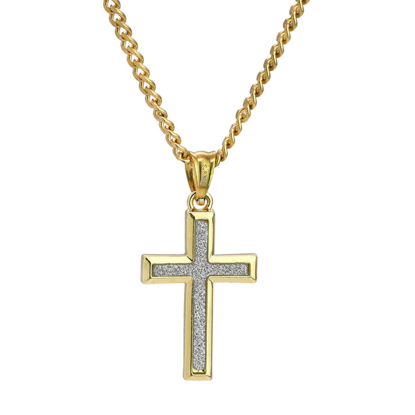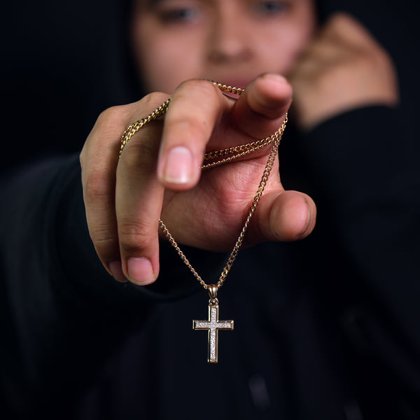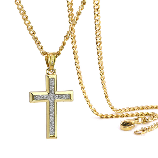 Slim Stardust Cross Pendant 24" Cuban Chain Hip Hop Style 18k Gold Stainless Steel