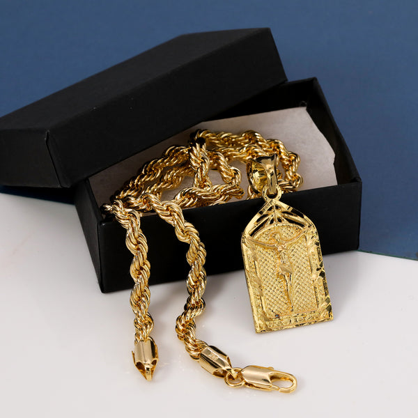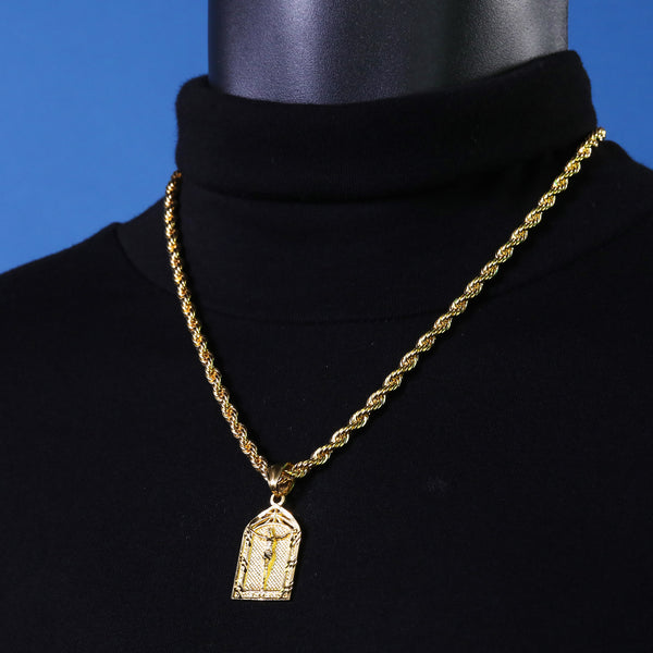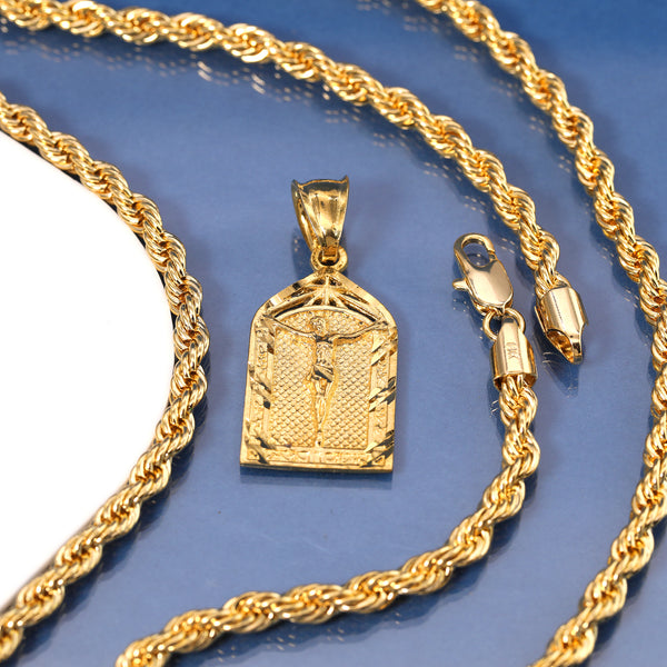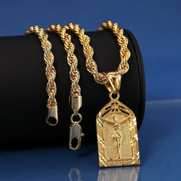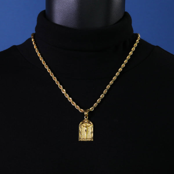 Jesus Temple Pendant Rope Chain 14k Gold Plated