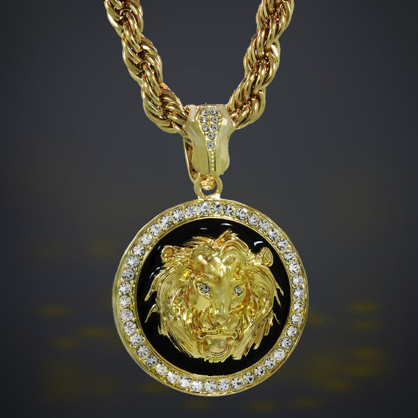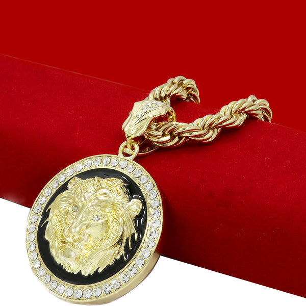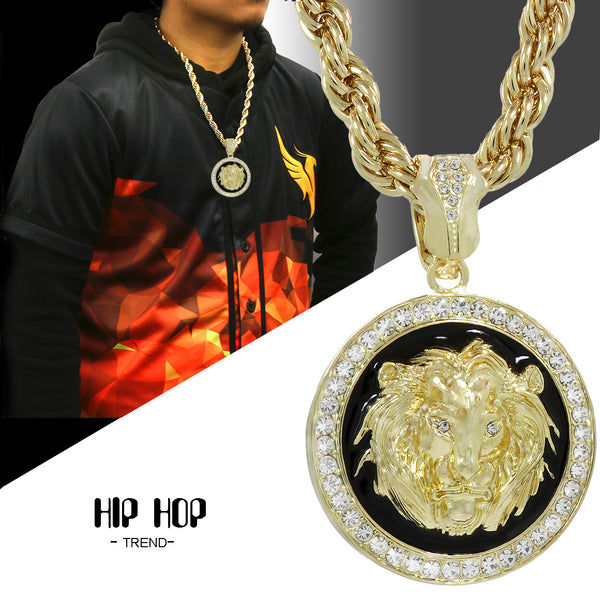 Hip Hop Bling 14K Real Gold Filled Necklace Pendant 14K Gold Filled Iced OutĀ Lion Coin Hip Hop Pendant with 9mm 24" Rope Chain Gold Filled OverĀ  Makes this Necklace Look...