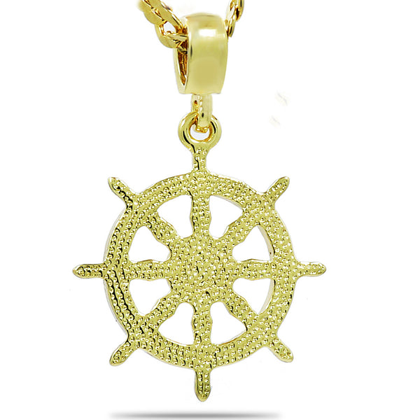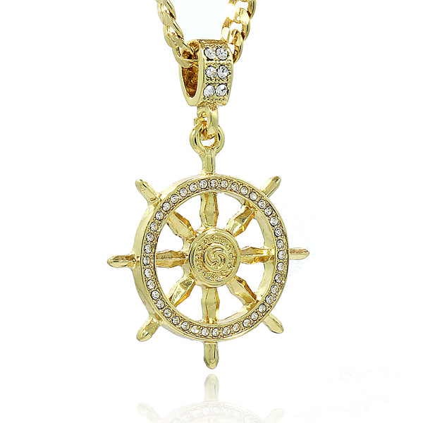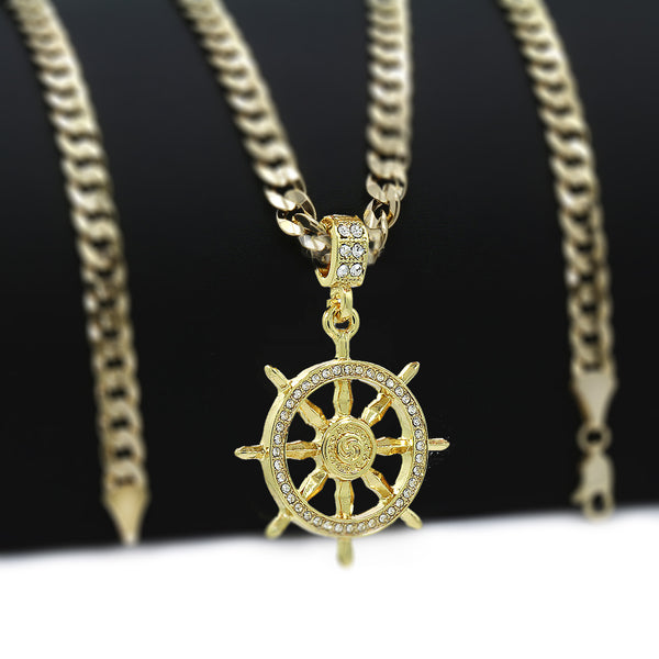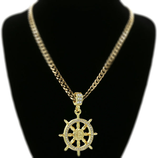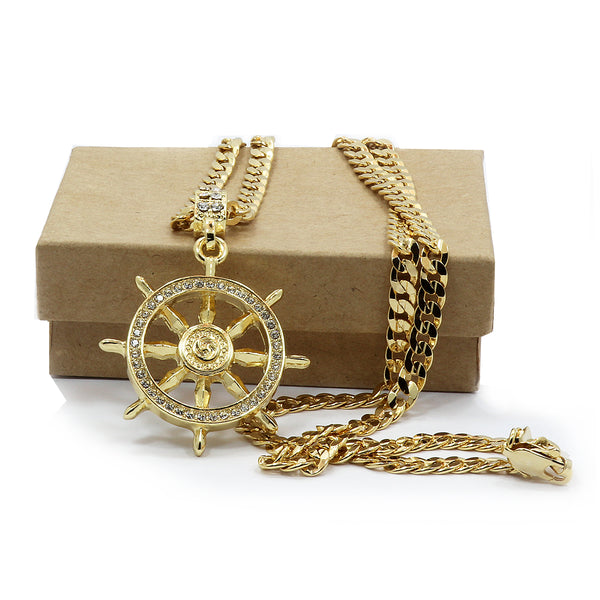 Hip Hop Bling 14K Real Gold Filled Necklace Pendant 14K Gold Filled Iced Out Wheel Hip Hop Pendant with 5mm 24"Cuban Chain Gold Filled Over Brass Makes this Necklace Look...
