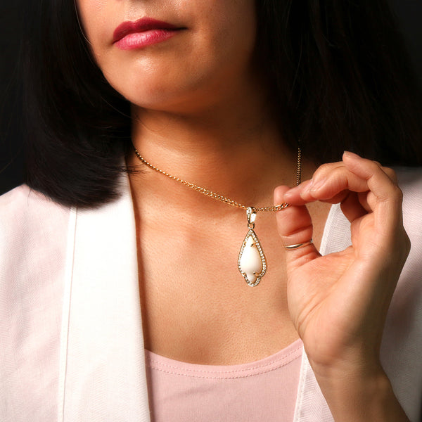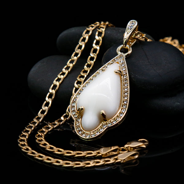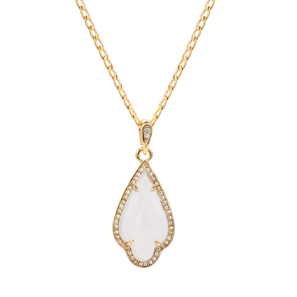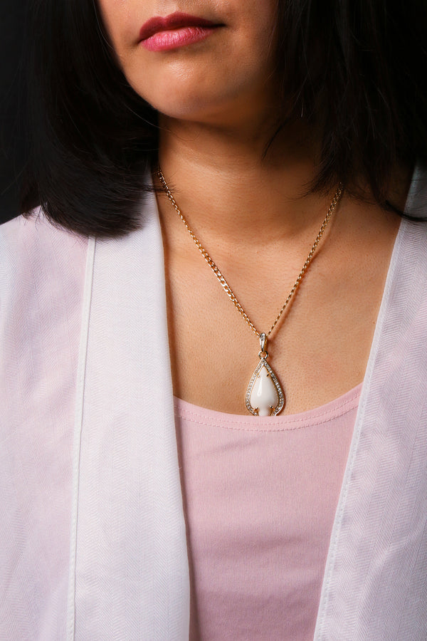 White Curved Tear Women's Jade Chain Pendant Necklace