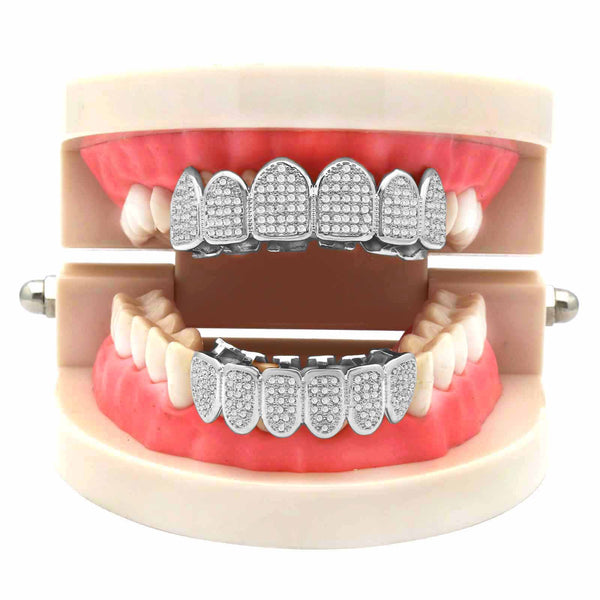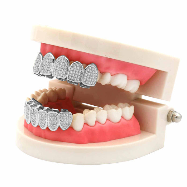 GRILLZ SET MICRO PAVE FULL CZ SILVER