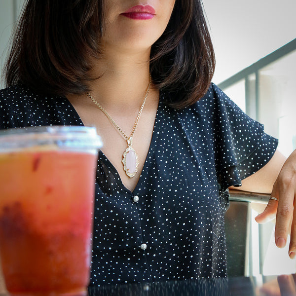 White Oval Women's Jade Chain Pendant Necklace
