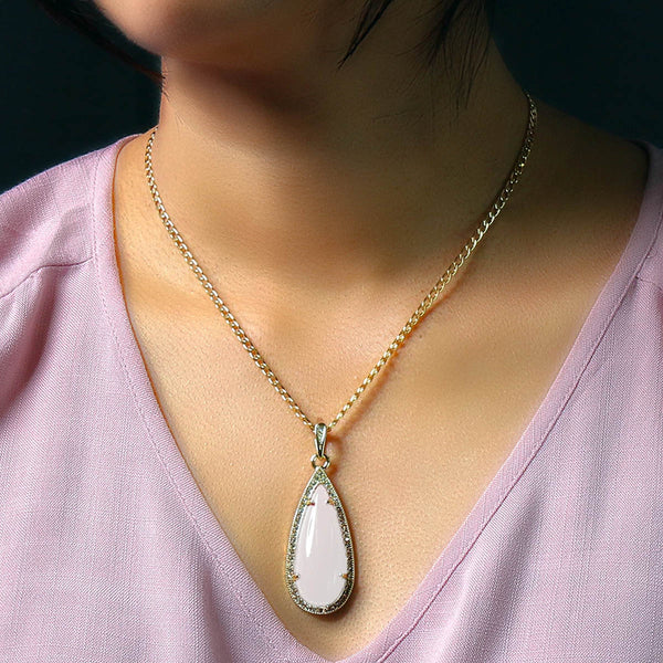 White Tear Women's Jade Cuban Chain Pendant Necklace