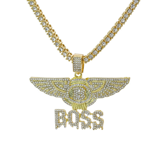 Wing Boss Drip Cz 4 Pcs Set Puffy Mariner Chain, Tennis Chain & Miami Cuban Chain Bundle Gold PT