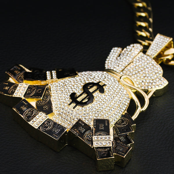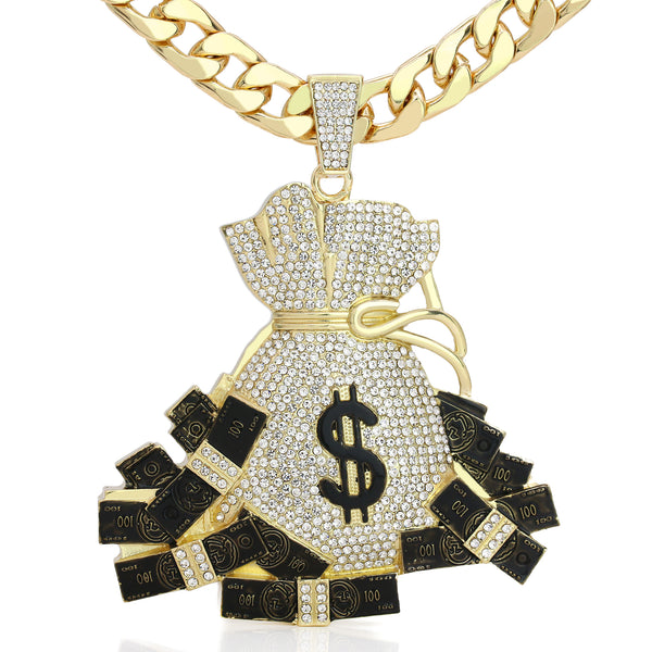 XXL Big Money Bag Pendant & 14mm Flat Cuban Chain – 4" Hip Hop Bling
