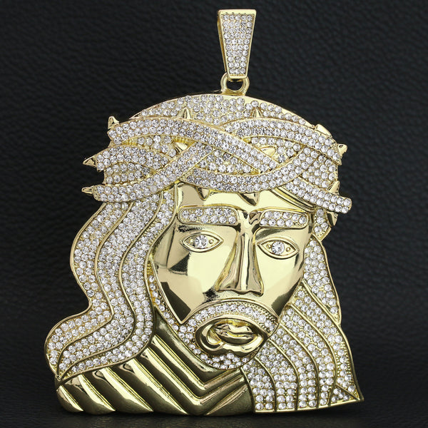 Command attention with the XXL Crown Jesus Wide Face Iced Pendant & 14mm Cuban Chain – a bold symbol of faith, power, and style. This stunning 4" x 4" pendant...