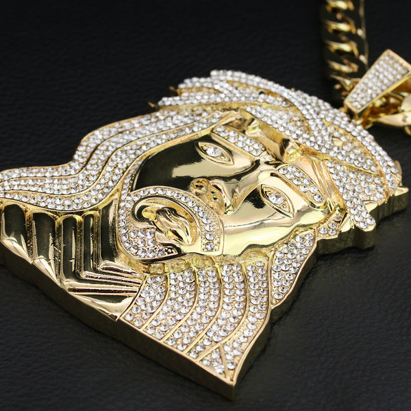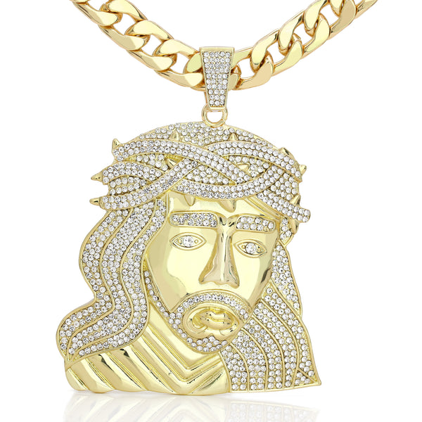 XXL Crowned Jesus Wide Face Pendant & 14mm Flat Cuban Chain – 4" Bling