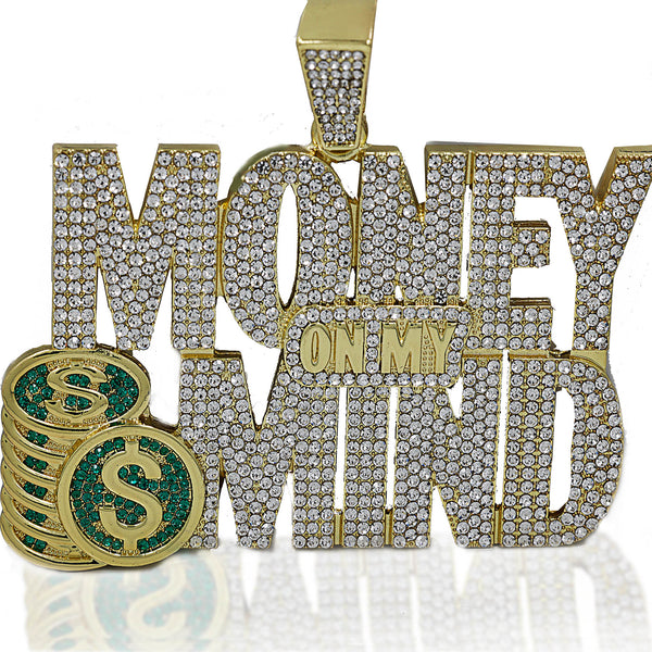 XXL Money On My Mind Pendant & Iced Cuban Chain – 16mm 18"-30" Gold Bling