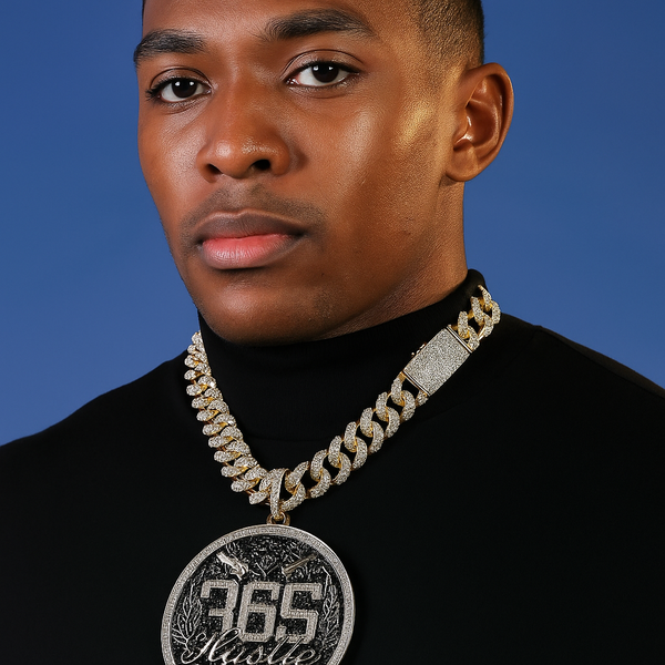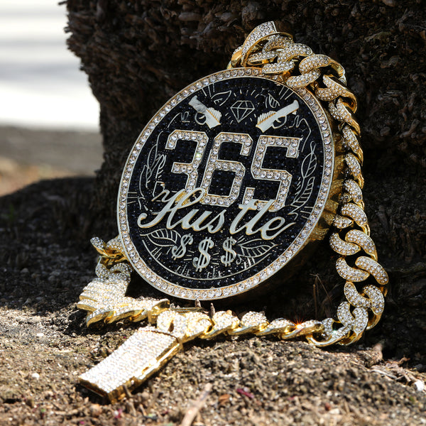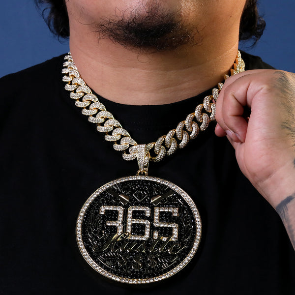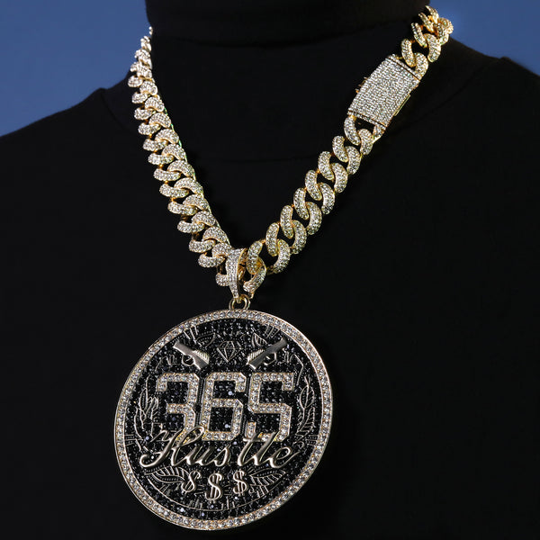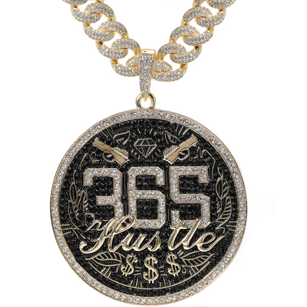 XXL Round 365 Hustle Pendant with 14K Gold Plated 20" Cuban Choker Chain – Box Clasp