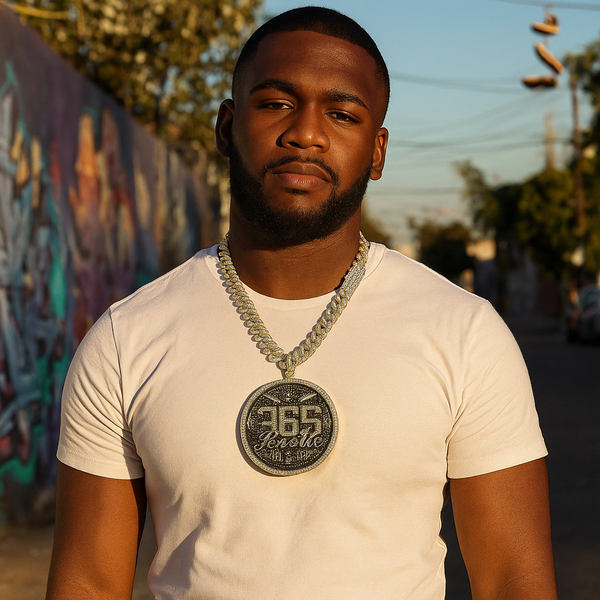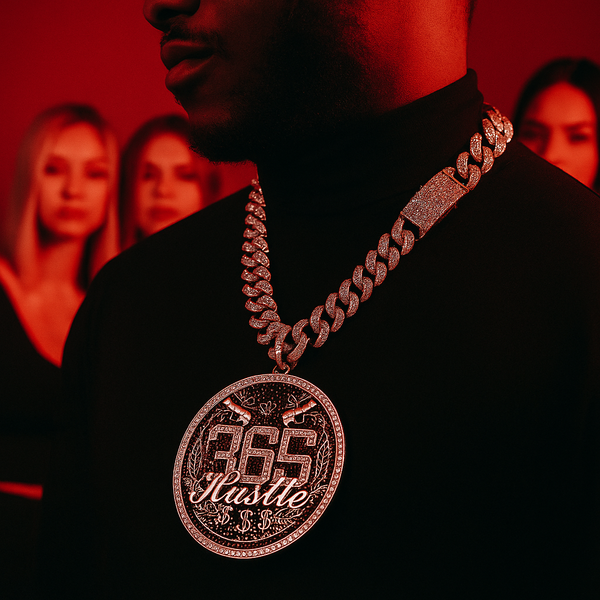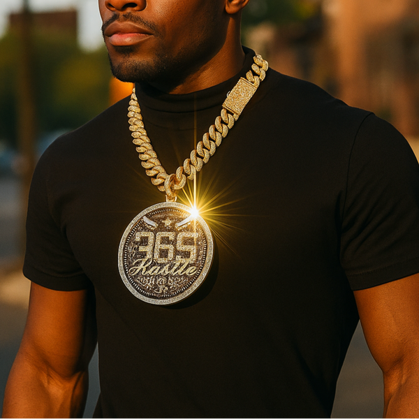 Make a Bold Statement with the 365 Hustle Jumbo Pendant Set Get ready to shine like a true superstar with our Large Round 365 Hustle Pendant & Chain Set. This...