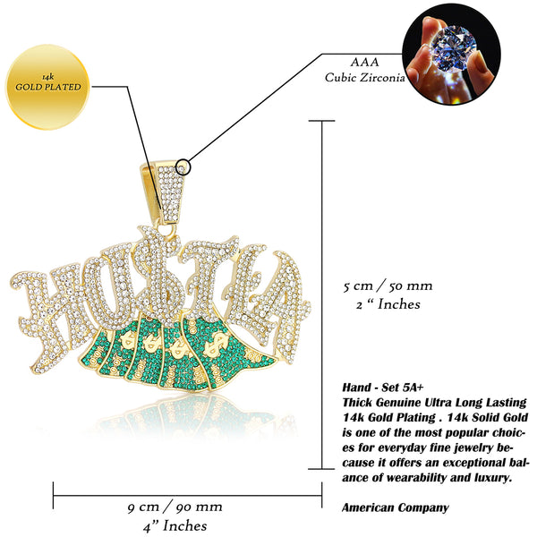 XXL 14k Hustla Huge Pendant 14mm Cuban Chain